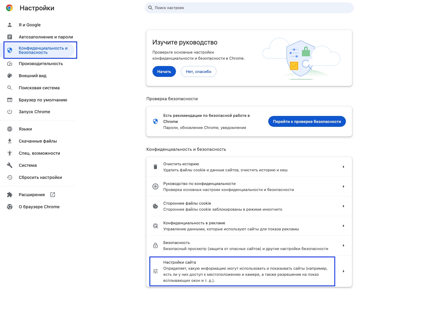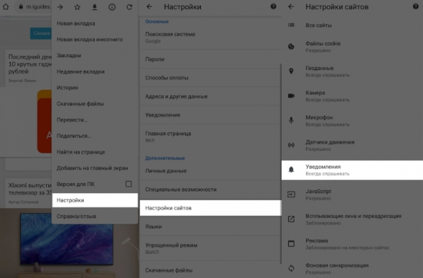 В разделе Уведомления нажмите Уведомления → Уведомления от сайтов.