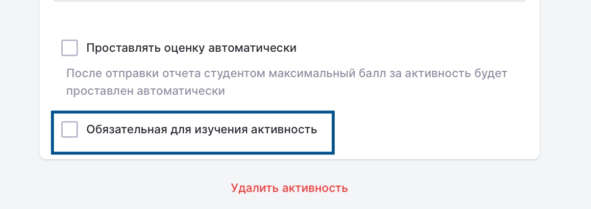 Если же таких активностей нет, проставьте обязательность активностям с типами «Практика», «Самостоятельная работа», «Лабораторная», «Семинар» (на ваше усмотрение).